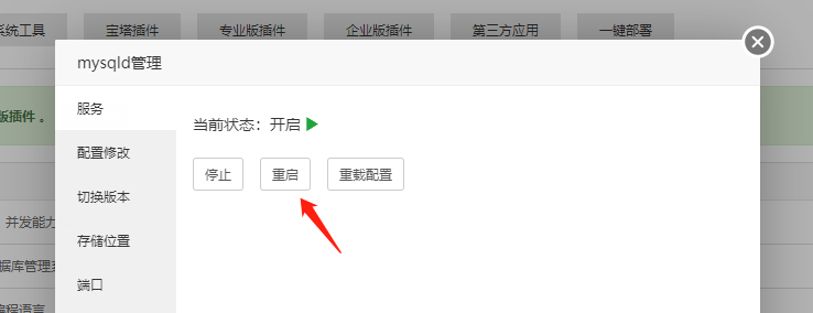 4.重啟MySQL
